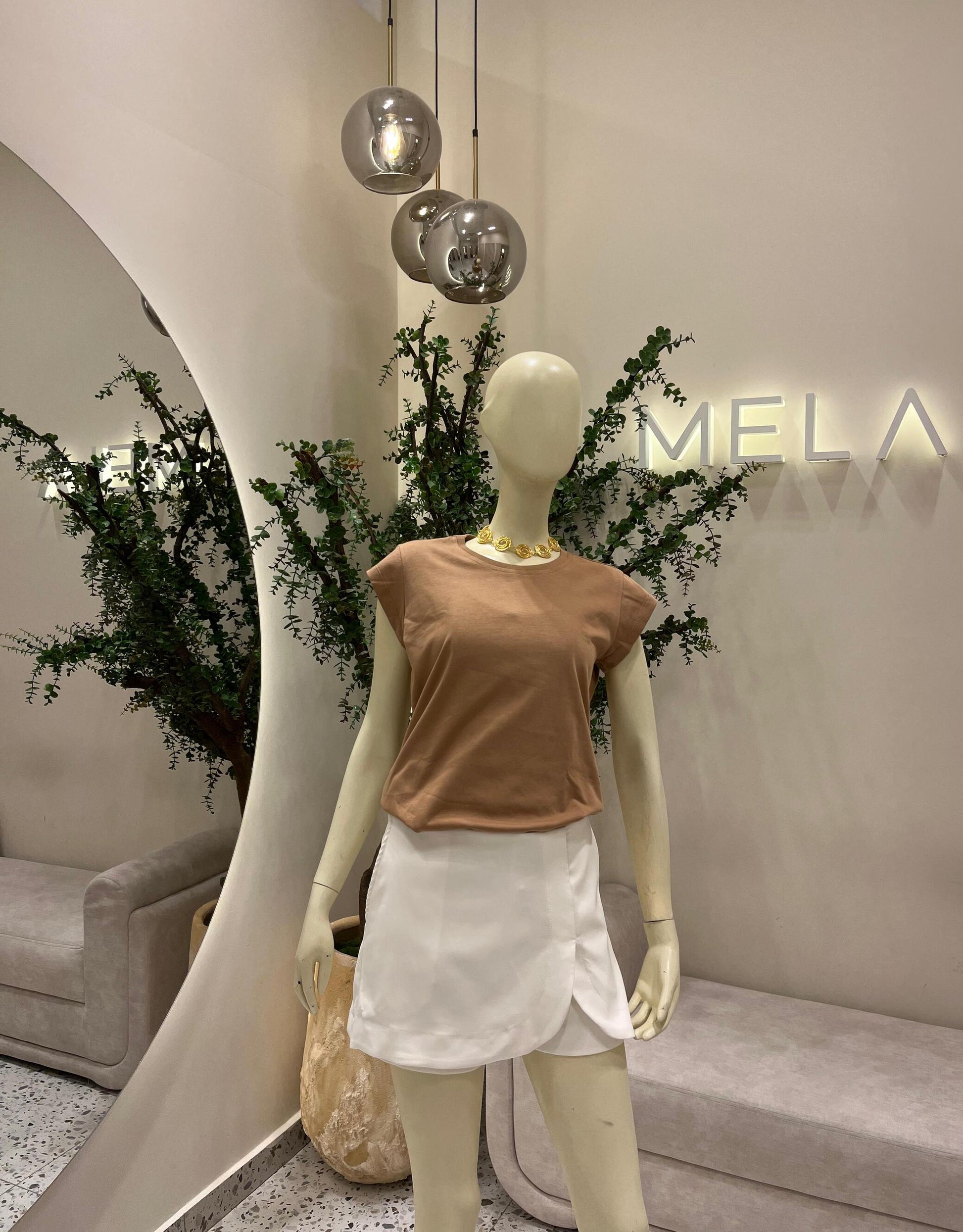 Camiseta básica, con cuello redondo y mangas ligeramente extendida, en tela Varsovia.