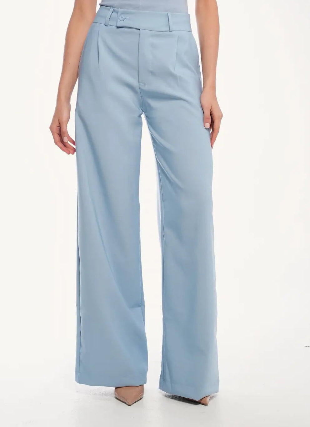 Pantalón de tiro alto con corte ancho y caída fluida que estiliza la silueta. Su diseño incorpora pretina ancha que define la cintura, bolsillos laterales discretos y cierre frontal oculto para un acabado limpio, elegante y sofisticado. Ideal para looks femeninos con un toque chic.